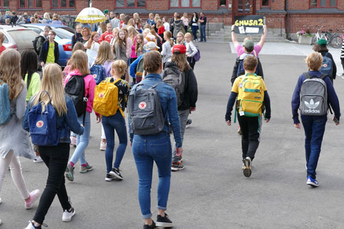 - Peruskoulun kuudesluokkalaiset, uudet 7LUMA-luokkien oppilaat ja muut uudet oppilaat kokoontuvat koulun pihalle klo 9.45, jossa luokanvalvojat ja oppilaanohjaajat ottavat heidät vastaan.