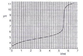 | a) | Piirrä titrauskäyrä. Käytä pystyakselina liuoksen pH:ta ja vaaka-akselina NaOH-kulutusta. Merkitse ekvivalenttikohdan sijainti kuvaan ja määritä sen perusteella etikkahapon pitoisuus (g/l) väkiviinaetikassa. (3 p.) |