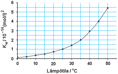 Oheisessa kuvassa on esitetty veden ionitulon arvo eri lämpötiloissa.